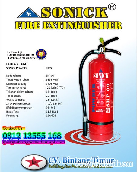 ALAT PEMADAM API MERK SONICK ® DENGAN ISI SERBUK KIMIA KERING 9 Kg