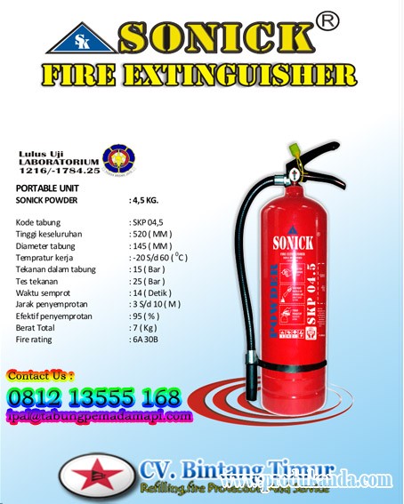 ALAT PEMADAM API MERK SONICK ® DENGAN ISI SERBUK KIMIA KERING 4, 5 Kg